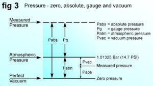 Gauge Pressure is measured by instruments that indicate a difference between the pressure of the atmosphere and the pressure of the gas or liquid. It is therefore necessary to add Atmospheric Pressureto gauge readings to establish Absolute Pressure.
