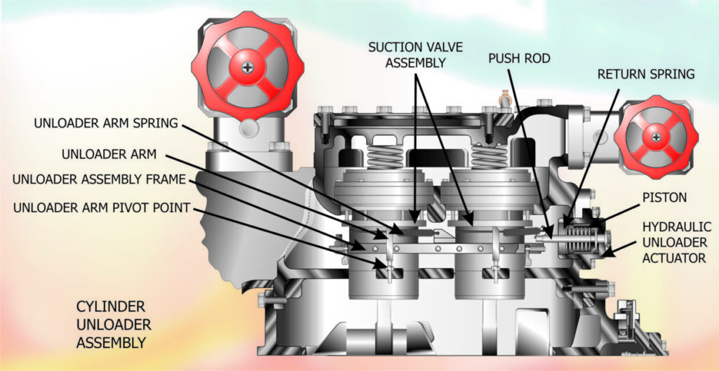 On larger reciprocating compressors, the option to use cylinder unloading is often available. Cylinder unloading is achieved in a number of ways, the two most common methods being Suction Valve Control and Cylinder Head Bypass.