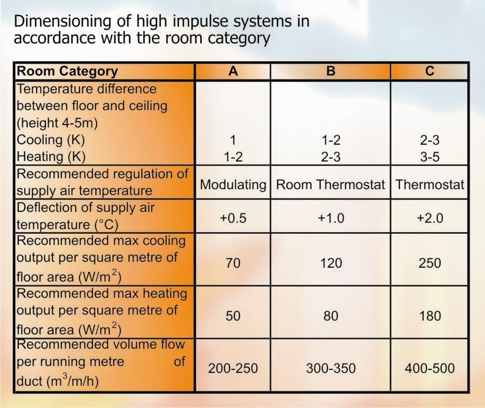 Table 1 – Dimensioning of High Impulse Systems in accordance with the room category